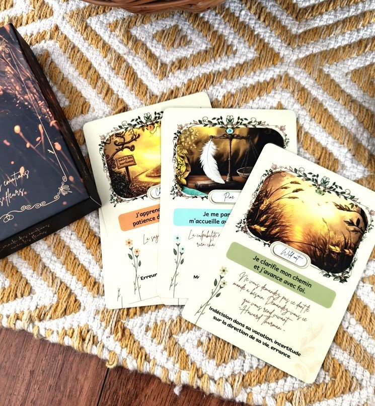 Cet oracle des émotions avec les fleurs, a été conçu comme un compagnon du quotidien pour t’aider à mieux comprendre, accueillir et transformer tes émotions. À travers des cartes intuitives et inspirantes que j’ai pris le temps de créer avec amour, en lien avec le travail du Dr Bach et ses fameuses fleurs de Bach. Il t’invite à mettre des mots sur ce que tu ressens, à t’écouter avec bienveillance et à éclairer tes choix au travers de petits rituels ou parfois de prises de conscience, pistes de réflexion que je te propose.